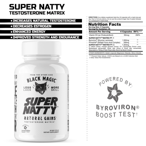Super Natty™️ is loaded with patented ingredients like Primave® which studies show increased natural testosterone levels by 19%. Pair that with the revolutionary Natural SERM E. Cottonii which naturally suppresses the E2 metabolizing-enzymes which are responsible for the creation of estrogen and you will be back in the game like never before. Jump over the hurdles and bring your best physique to date with Super Natty™️ from Black Magic Supply.