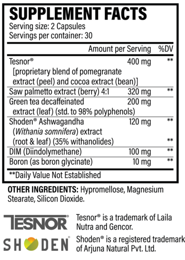 contains ingredients that support healthy testosterone levels*, healthy estrogen metabolism*, male sexual health*, and prostate health*.